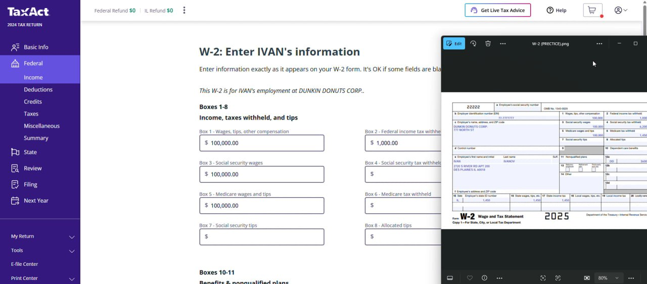 Практика: Пошаговая подача налоговой декларации через Налоговый Софт (TaxAct) для W-2